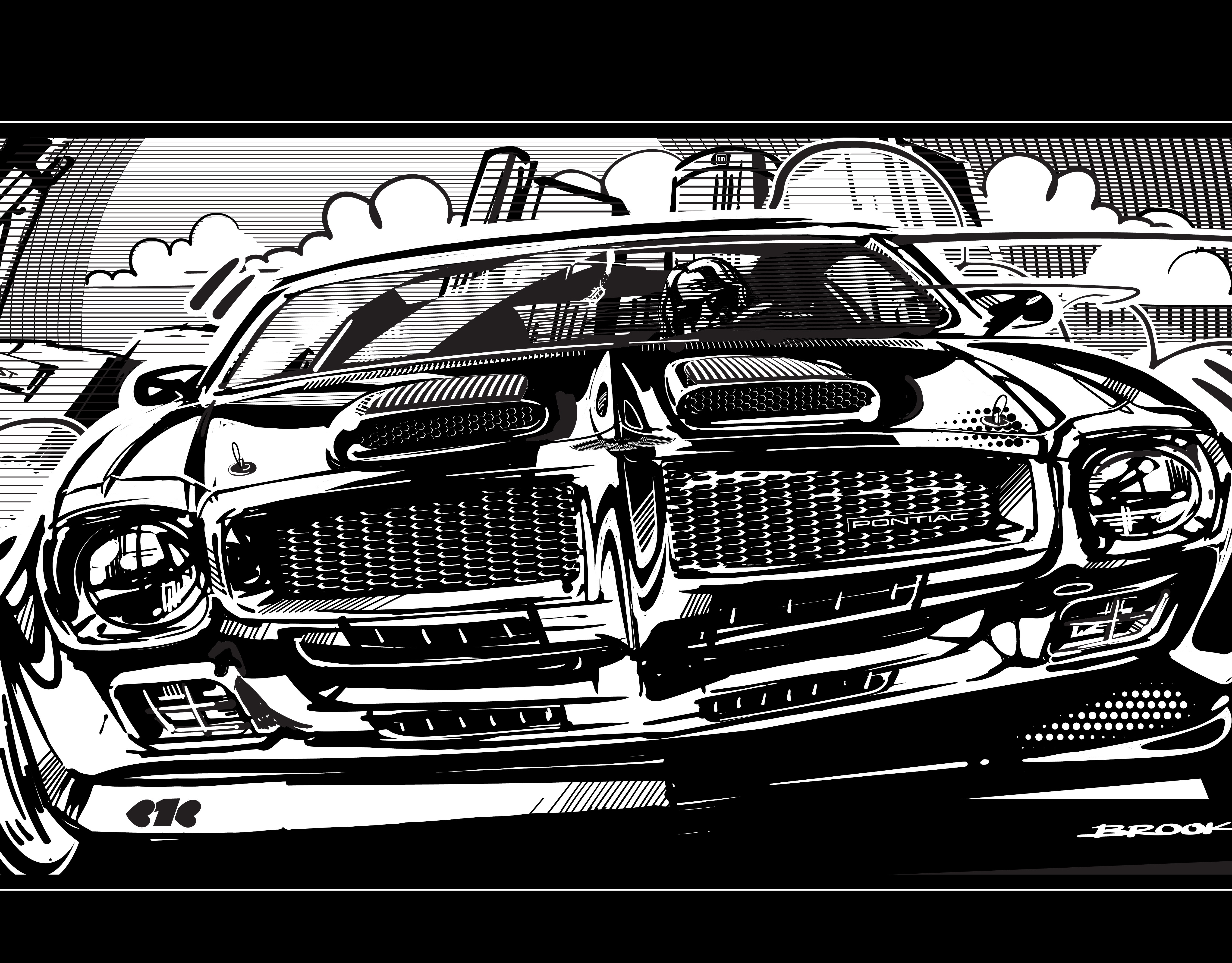 Newlab Exhibition, @ Sketchbattle, Michigan Central, '73 Pontiac TransAm Formula 400 mash-up