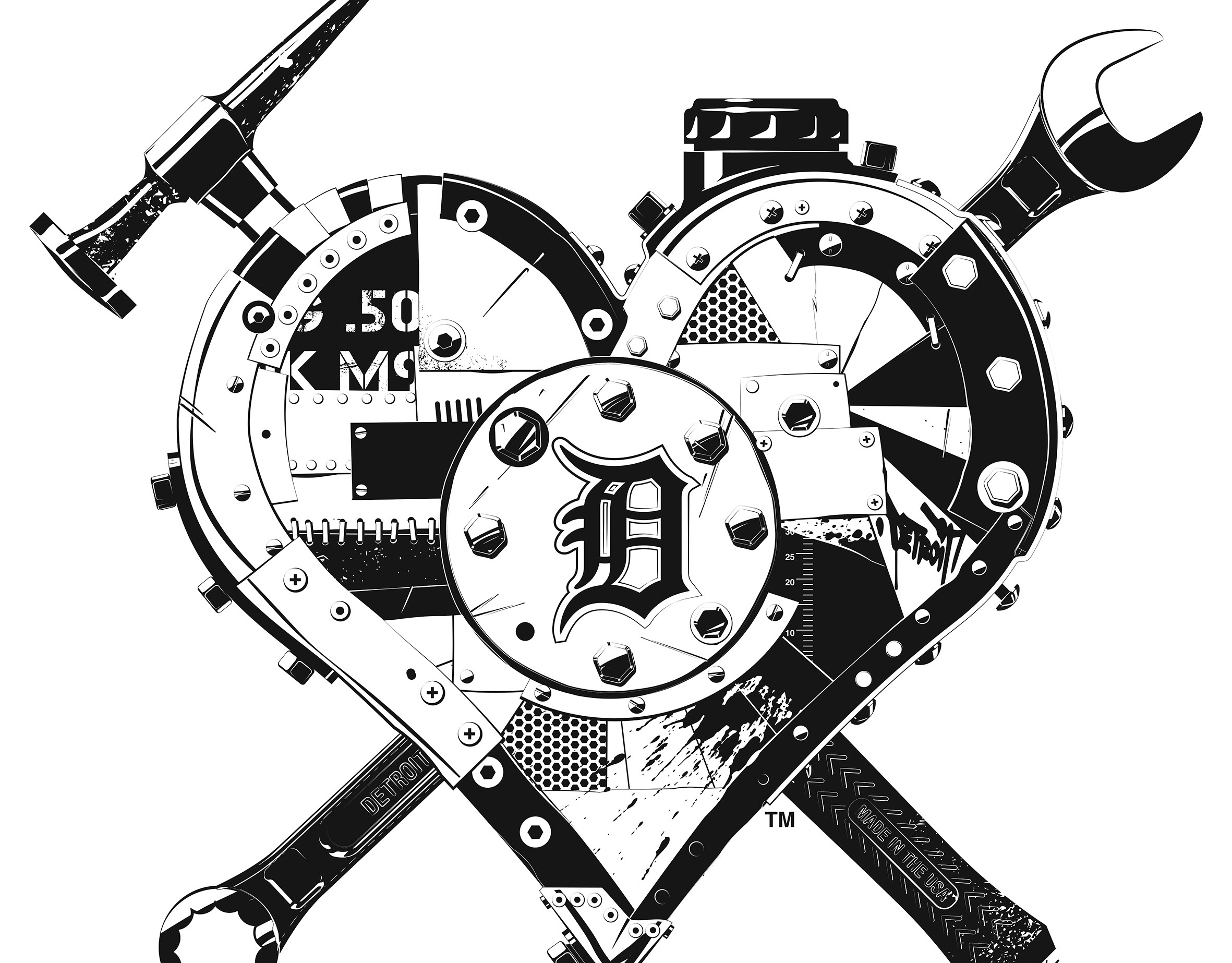 This full-size wall sketch shares optimism for Detroit and celebrates its automotive and tech legacy. It also hints at its music culture, with an emphasis on electronica.