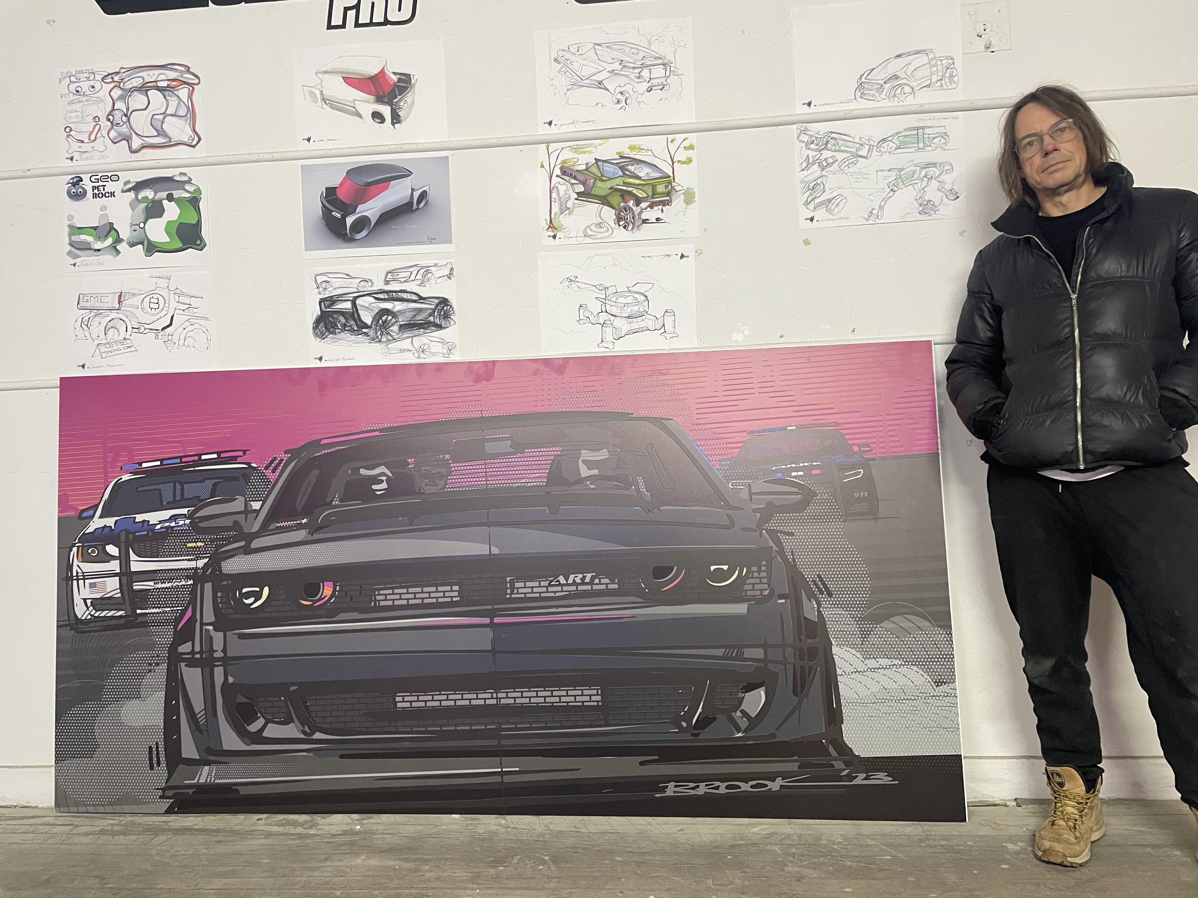 "GTA Grand River" Depicting a stolen Dodge Demon escaping popo on Grand River, 2024 Newlab Exhibition, @ Michigan Central. Digital Print