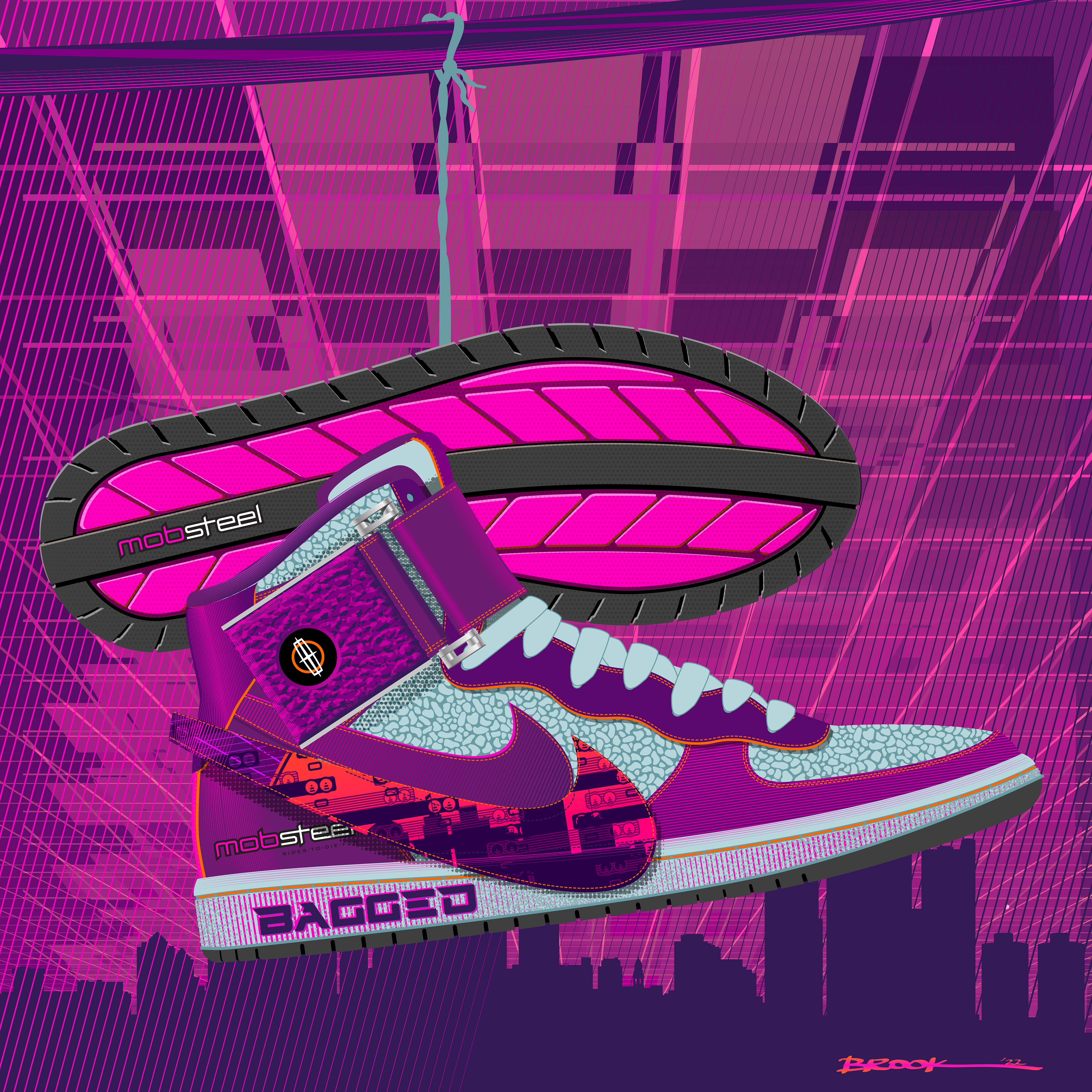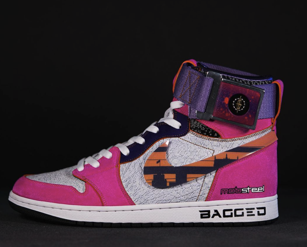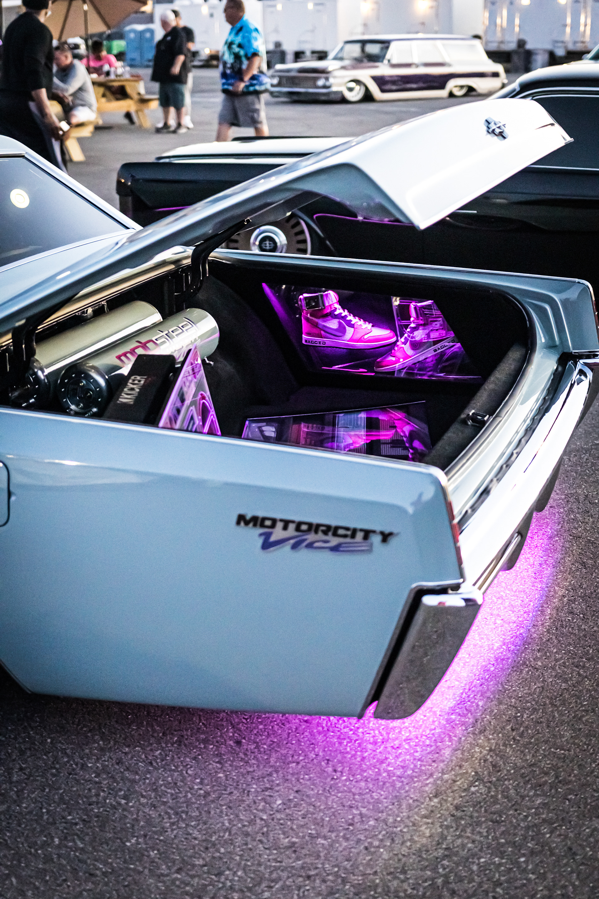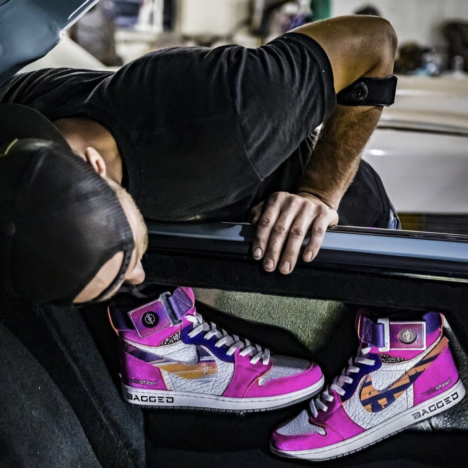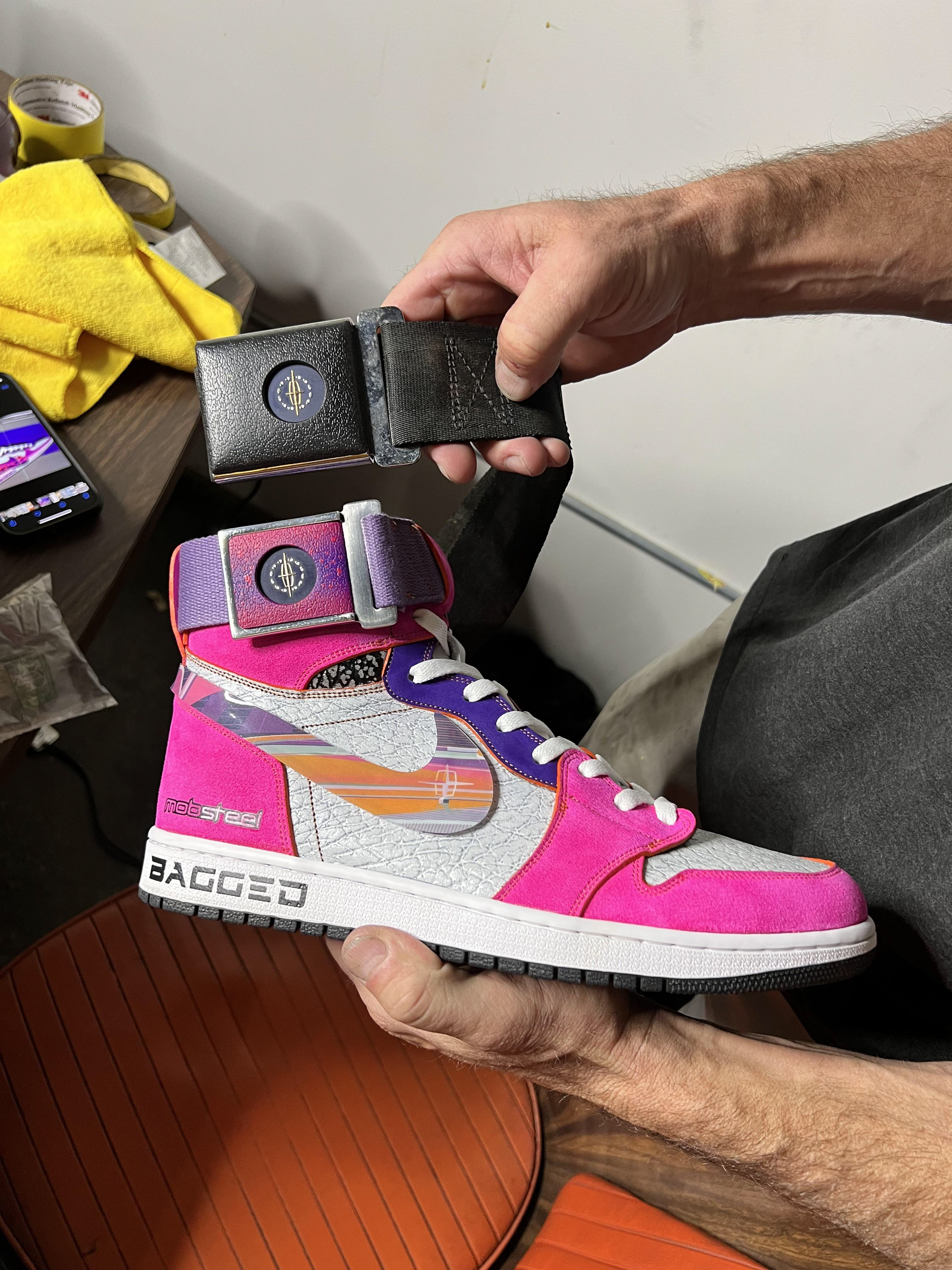 Sneakers that were designed in conjunction with the Motorcity Vice, Mobsteel's custom '66 Lincoln Continental.